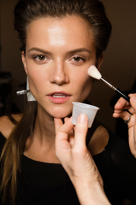 The bold-minded should follow the shows by Rodarte and Tommy Hilfiger. Pat McGrath drew star-shape tattoos all over the models’ bodies for the first one, while James Caliardos went yet further and imitated piercing effect with the help of small silver clamps. As a matter of fact to show you fashion protest in real life the only thing you need is a black kajal. Pencil your upper and lower eyelids heavily, soft the lines in an offhand manner and go for it – dancing in leather pants to Mick Jagger hits. It was his daughter Georgia May Jagger who opened the Tommy Hilfiger performance.