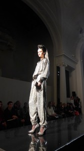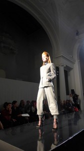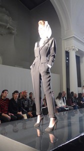 Не обошлось и без неожиданностей: седовласая манекенщица Catherine Loewe, открывшая шоу в облегающем брючном костюме-джерси, не выдержала испытания высокими каблуками и несколько раз упала на подиуме. Произошедшее было воспринято в зале с сочувствием, и на финальной проходке гранд-дама гордо несла злосчастные туфли в руках под ободряющие аплодисменты.
