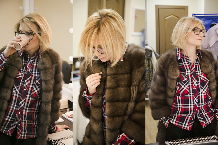 Shirt — Zara, pants — DKNY, fur coat — Via Cappella, glasses — Illesteva, ring — “Smolensk Diamonds”, bracelet — Cartier. Hairstyle: Julia Lisova / Jacques Dessange. Make-up: Svetlana Nikiforova / Lancome. Photo: © Alexandra KasatkinaРубашка — Zara, брюки — DKNY, шуба — Via Cappella, очки — Illesteva, кольцо — “Смоленские бриллианты”, браслет — Cartier. Прическа: Юлия Лысова / Jacques Dessange. Макияж: Светлана Никифорова / Lancome. Фото: © Aлександра Касаткина