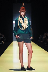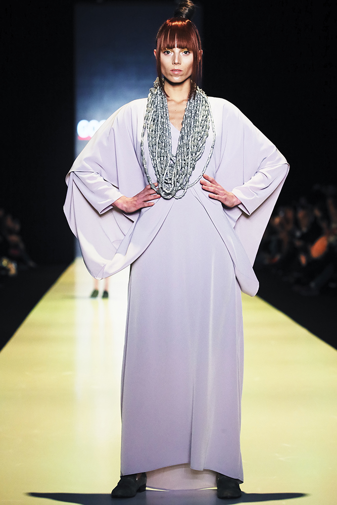 MOSCOW, RUSSIA – OCTOBER 23: A model walks the runway at the GOGA NIKABADZE during day 3 of Mercedes Benz Fashion Week Russia SS16 at Manege on October 23, 2015 in Moscow, Russia. (Photo by Oleg Nikishin/MBFWRussia)