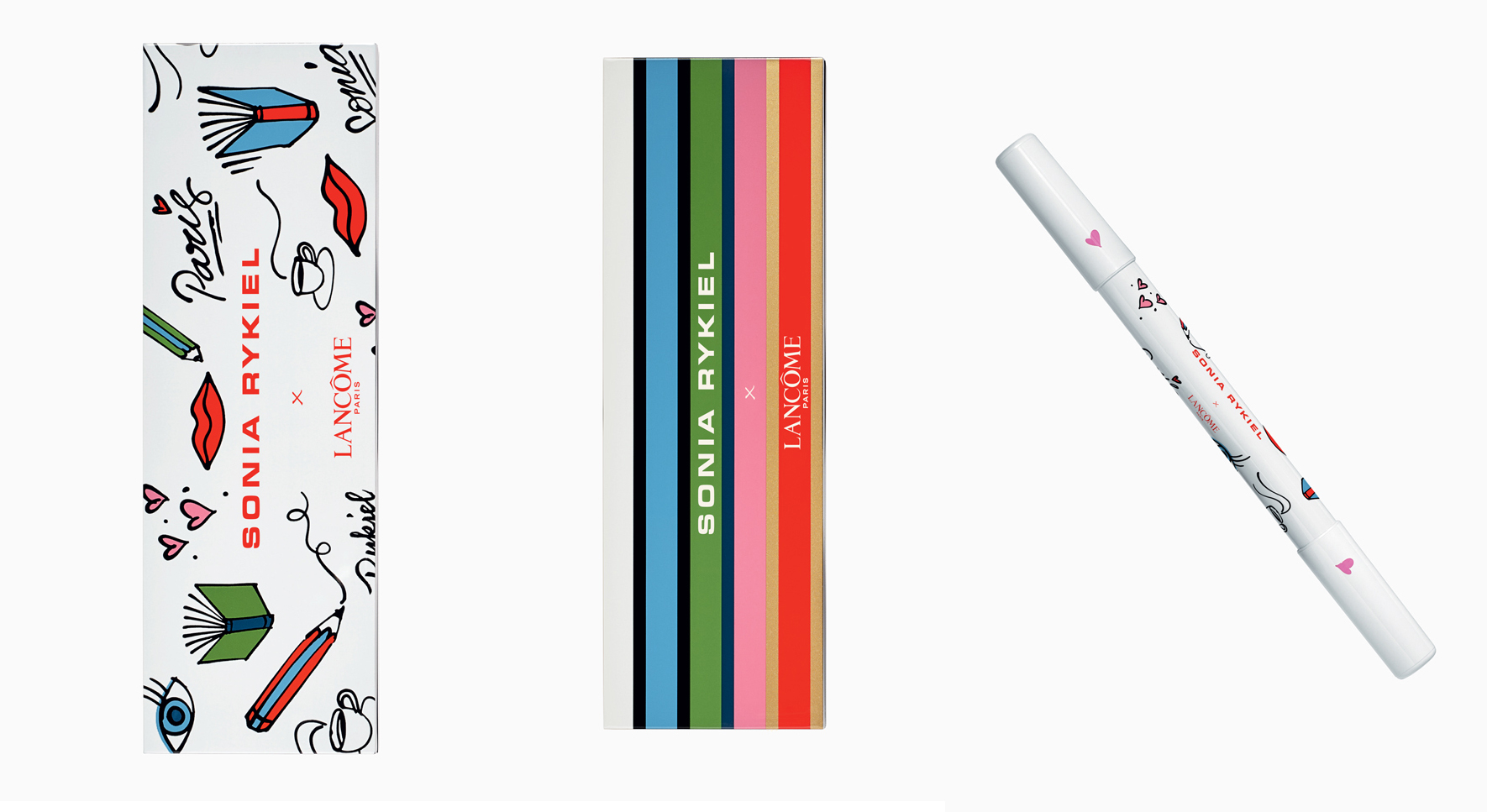 В новой коллекции макияжа есть все лучшее, что присуще двум французским домам, она получилась легкой и жизнерадостной. Жюли де Либран, креативный директор по красоте Sonia Rykiel, использовала стилизованные полоски и зарисовки на тему бульвара Сен-Жермен в дизайне упаковки продуктов — самые яркие символы Sonya Rykiel. В коллекции найдутся палетки теней, карандаши для губ, тональные средства, румяна и лаки для ногтей. Все сложных и привлекательных оттенков от апельсиновых до лиловых.