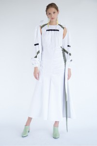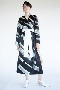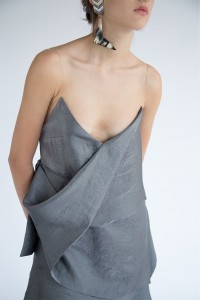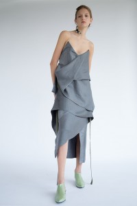 Грузинский дизайнер Ладо Бокучава для Atelier Kikala сделал коллекцию, вдохновившись фильмами Дэвида Линча и творчеством Джесси Канды. Сложные конструкции платьев словно не подчиняются законам гравитации и сочетаются с нонфигуративными приемами в отделке.