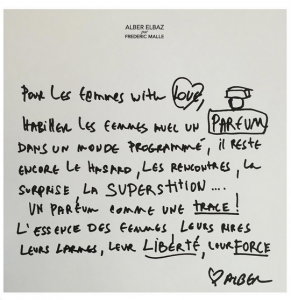 Все же небольшой сюрприз для публики Альбер Эльбаз подготовил: во время благодарственной речи рассказал о своей новой работе — аромате для Frederic Malle, который представят в марте 2017 года. Парфюм называется Superstitious, что на русский язык переводится как «суеверный». Все детали последуют ближе к моменту выпуска: fredericmalle.com